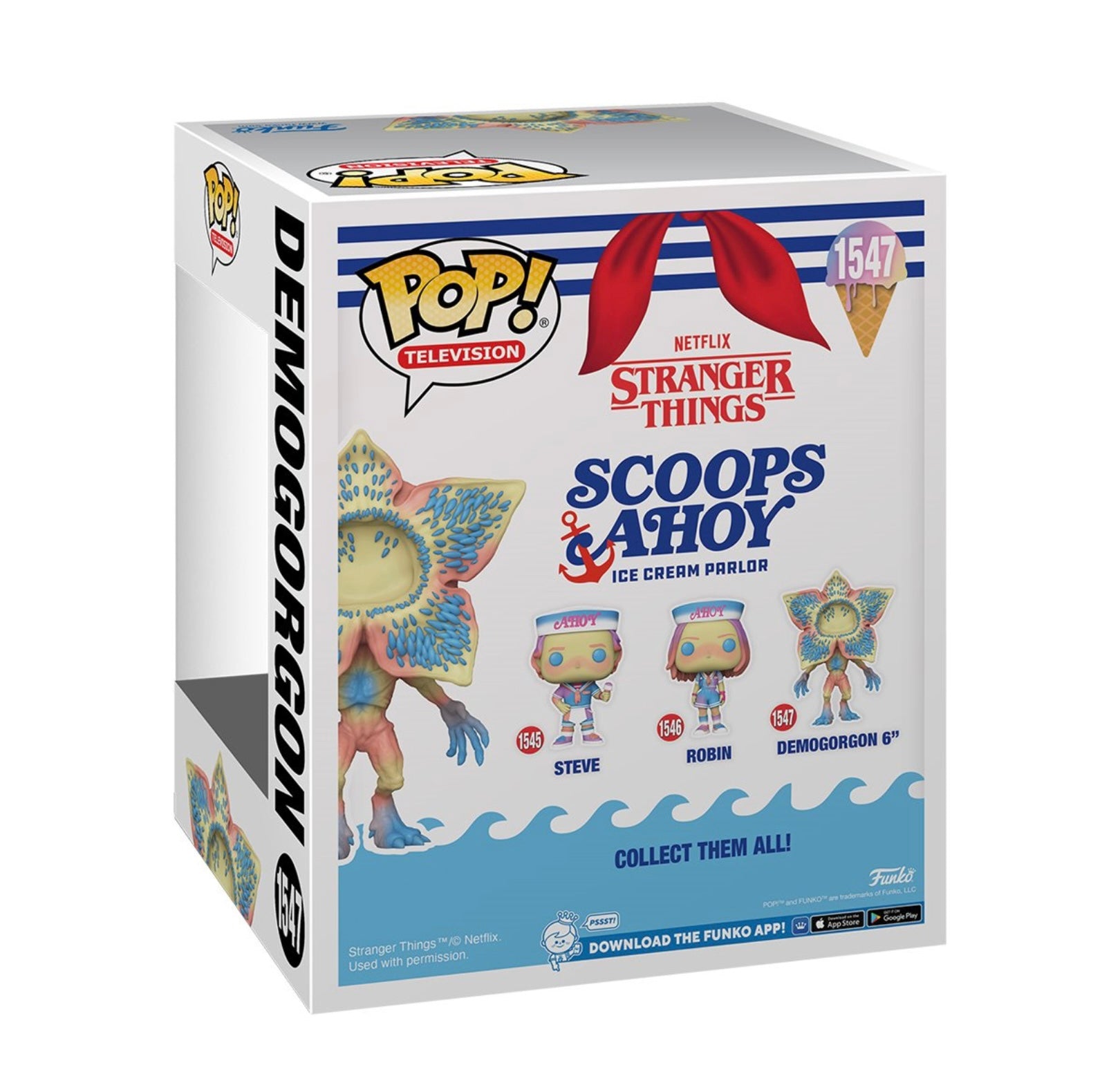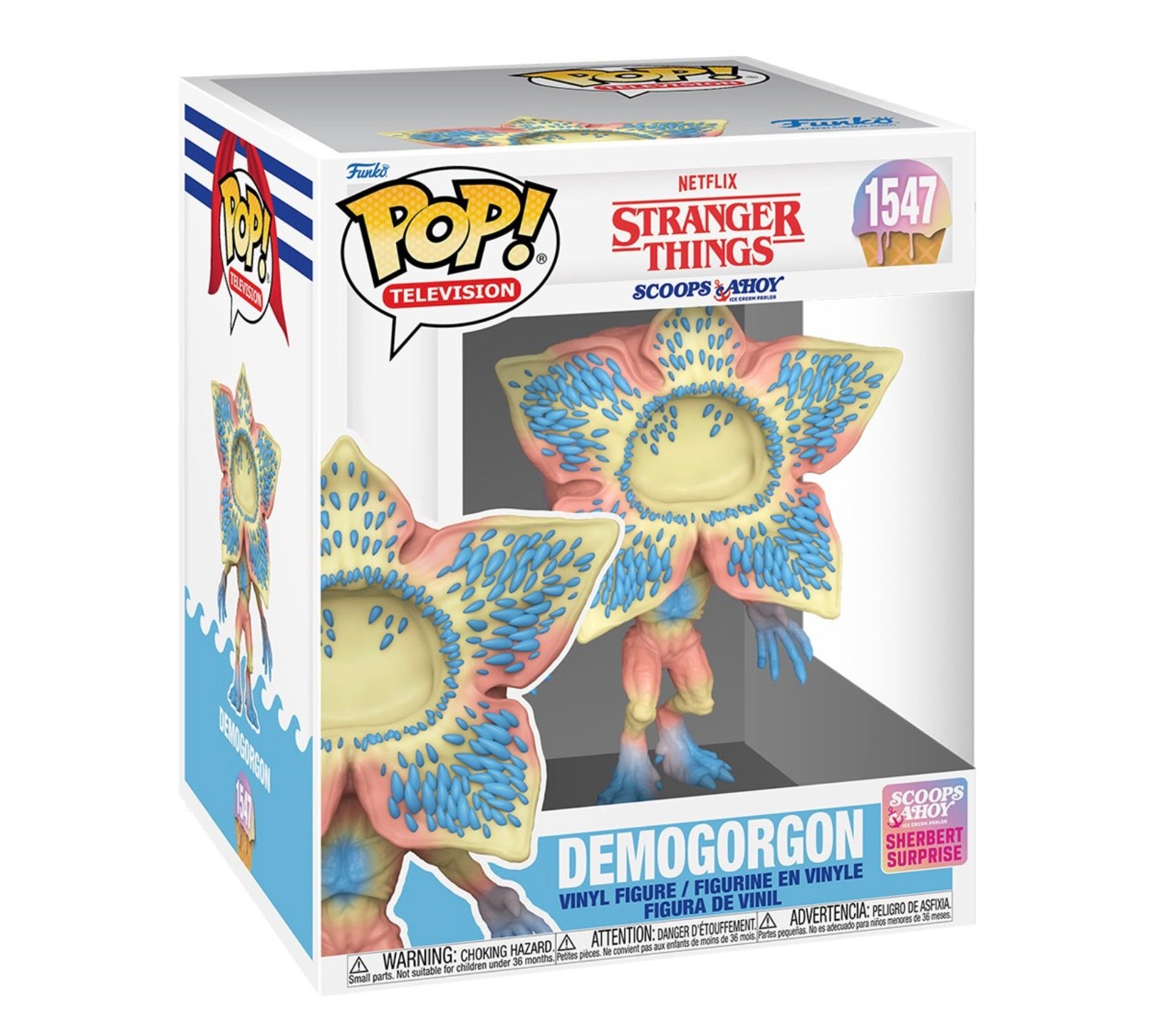 Hawkins, Indiana is harboring dangerous and supernatural secrets. Bring home the happenings, characters, and breakthrough moments of the popular Stranger Things Netflix series with this Demogorgon Jumbo Pop! in a pastel deco! This Stranger Things Demogorgon (Scoops Ahoy) Super 6-Inch Funko Pop! Vinyl Figure #1547 measures approximately 6-inches tall and comes packaged in a window display box.