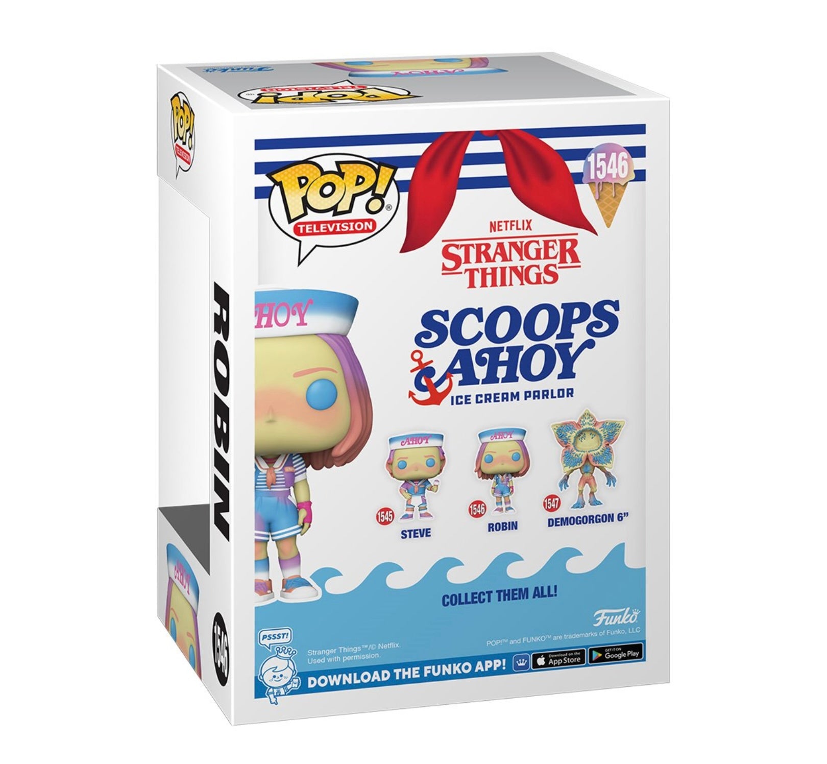 Hawkins, Indiana is harboring dangerous and supernatural secrets. Bring home the happenings, characters, and breakthrough moments of the popular Stranger Things Netflix series with this pastel deco of Robin in her Scoops Ahoy uniform! This Stranger Things Robin (Scoops Ahoy) Funko Pop! Vinyl Figure #1546 measures approximately 4-inches tall and comes packaged in a window display box.